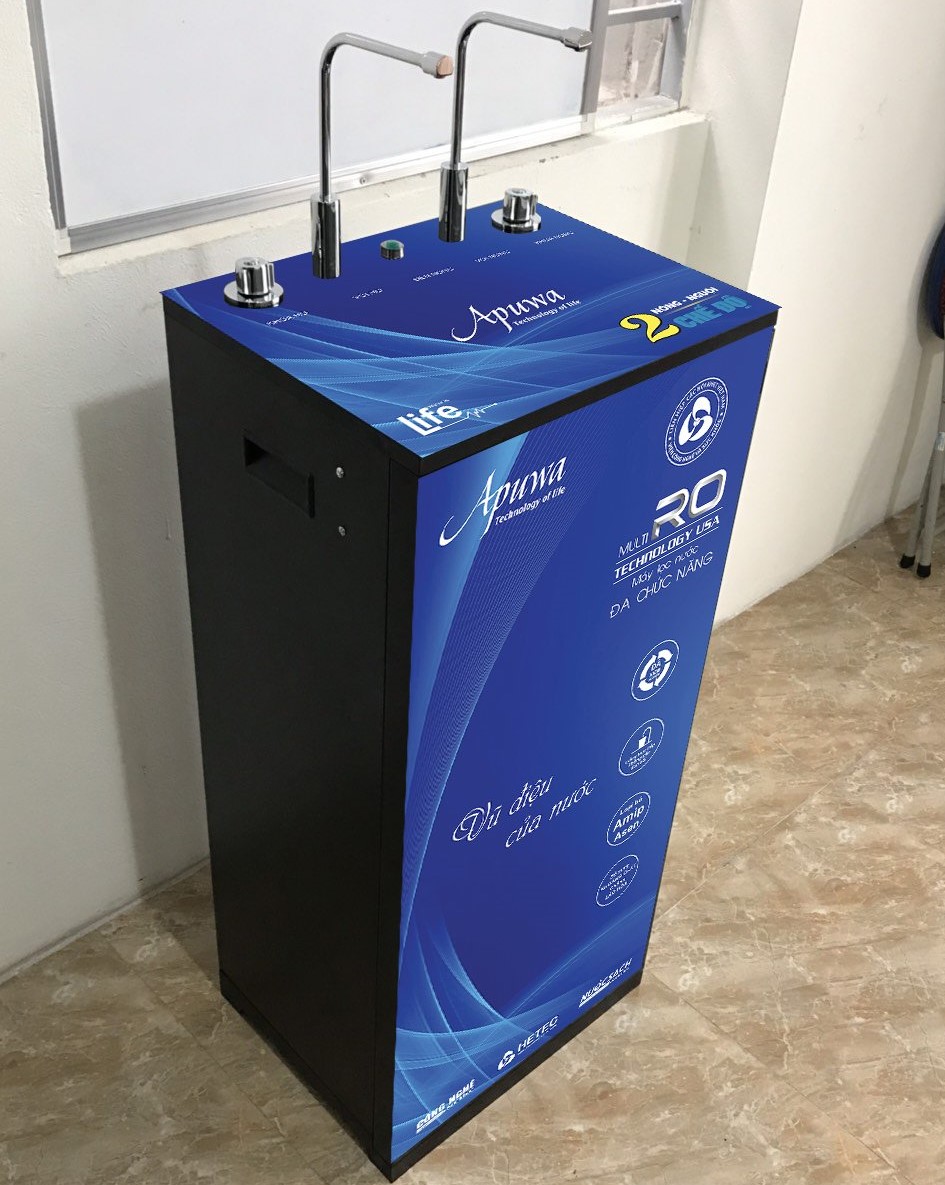 Thân tủ của Máy lọc nước Apuwa được làm bằng thép hợp kim, công nghệ sơn tĩnh điện kết hợp kết cấu khung nhựa và kính cường lực được in trên chất liệu 4D, không chỉ tạo nên bộ khung tủ vững chắc mà còn tạo nên một tác phẩm nghệ thuật làm tăng vẻ đẹp cho không gian đặt máy, chất liệu kính cường lực còn giúp người sử dụng rất dễ dàng khi vệ sinh trong quá trình sử dụng.